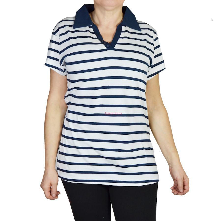 Dámské pruhované maxi triko s límečkem ve slušivých barevných kombinacích unosíte prakticky ke každým kalhotům či sukni. Tričko v nadměrných velikostech lze nosit jak na doma, tak na ven, či do práce. Volný střih zajišťuje celodenní pohodlí, nikde nepne a zakrývá nedostatky na bříšku.