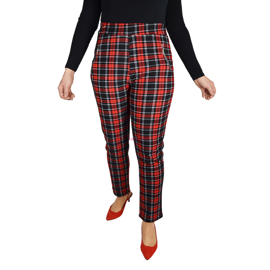 Černé a červené kárované kalhoty v nadměrných velikostech jsou stylovým a nadčasovým kouskem, který by neměl chybět ve Vašem šatníku! Skvěle je skombinujete například s černými, červenými a bílými halenkami. Kalhoty jsou díky svému elastickému materiálu velmi roztažné a pohodlné - navíc nemají zapínání a jsou do pasu na gumu. Na přední straně jsou praktické kapsy se zipem, do kterých lze vložit pár drobností.